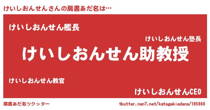 | ヘコむあだ名 | 『けいふぇ~』『けいっ子』 |