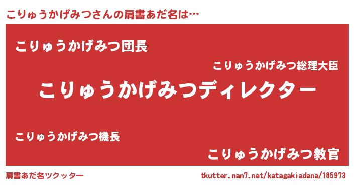 | 伝説のあだ名 | 『覚醒した僧侶こりゅうかげみつ』 |