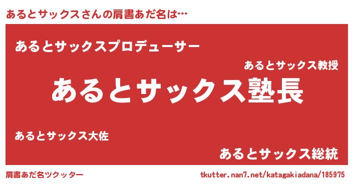 | 男性向けラノベタイトル風あだ名 | 『あるとサックスの嫁は女の子じゃないと思った?』 |