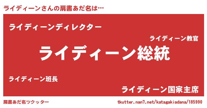 | 恥ずかしいあだ名 | 『ライディーンデラックス』『ライっちょ』 |