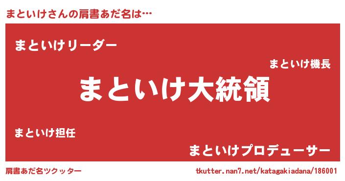 | 意味不明あだ名 | 『まといけフォーエバー』 |