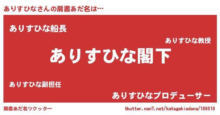 | 意味不明あだ名 | 『自称ありすひな』『永久保存ありすひな』 |