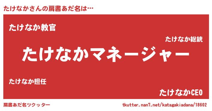 | ヒーロー風カッコイイあだ名 | 『仮面タケダー』『スーパータケナカ』 |