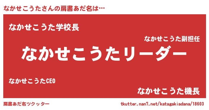 | 男性向けラノベタイトル風あだ名 | 『なかせこうたの嫁は女の子じゃないと思った?』 |