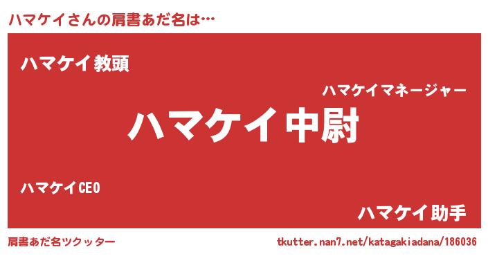 | ヒーロー風カッコイイあだ名 | 『ネオハマケイ』『天空の使者ハマケイ』 |