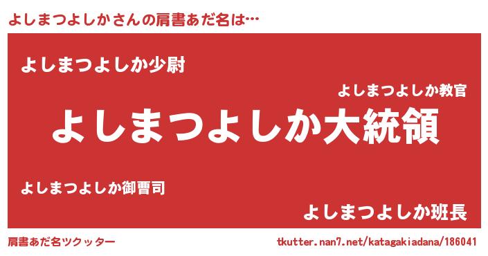 | 欧米人風あだ名 | 『よしまつよしかクリステル』 |