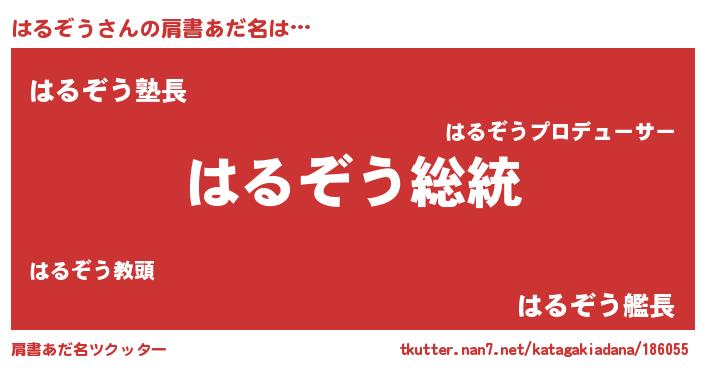 | 意味不明あだ名 | 『自称はるぞう』『永久保存はるぞう』 |