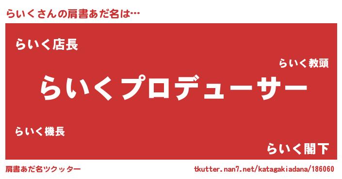 | 男性向けラノベタイトル風あだ名 | 『はたらくらいくさま!』『緋弾のライク』 |