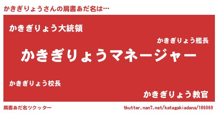 | 男性向けラノベタイトル風あだ名 | 『かきぎりょうに滅ぼされるだけの簡単なお仕事です』 |