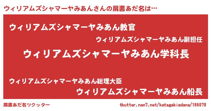 | 女子向けラノベタイトル風あだ名 | 『ウィリアムズシャマーヤみあん恋絵巻』 |