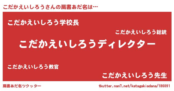 | 男性向けラノベタイトル風あだ名 | 『こだかえいしろうに滅ぼされるだけの簡単なお仕事です』 |