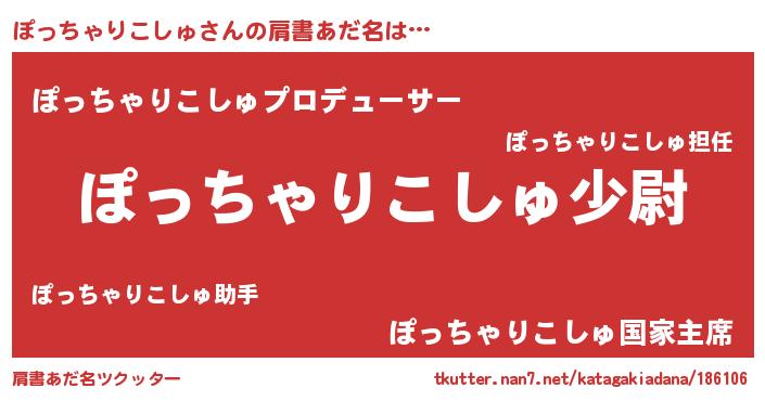 | 伝説のあだ名 | 『秘められし忍者ぽっちゃりこしゅ』 |