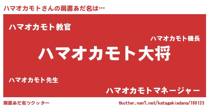 | ヒーロー風カッコイイあだ名 | 『仮面ハマダー』『ネオハマオカモト』 |