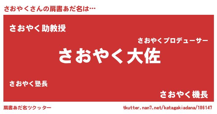 | 男性向けラノベタイトル風あだ名 | 『サオヤクスレイヤー』 |