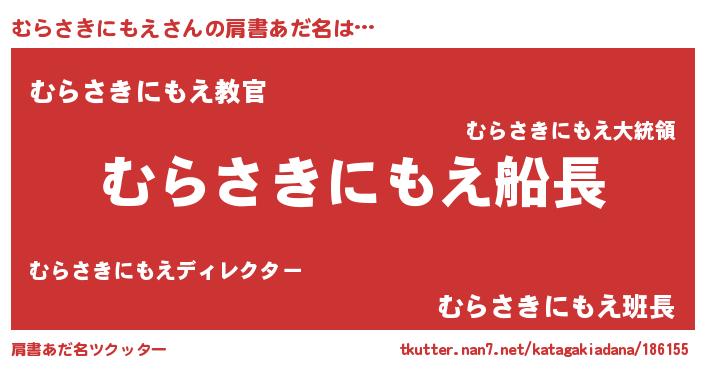 | 意味不明あだ名 | 『住所不定無職むらさきにもえ(4歳)』 |