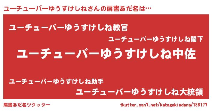 | 男性向けラノベタイトル風あだ名 | 『ユーチューバーユウスケシネスレイヤー』 |