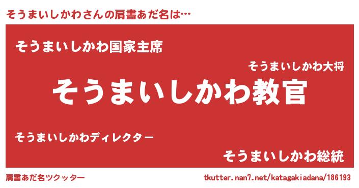 | 意味不明あだ名 | 『住所不定無職そうまいしかわ(81歳)』 |