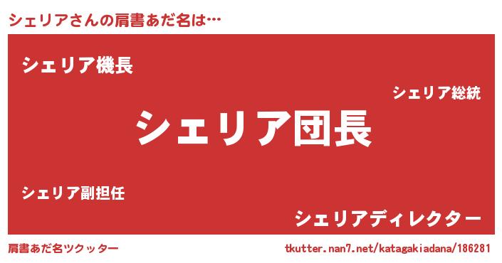 | ヘコむあだ名 | 『シェお』『シェリア(震え声)』 |