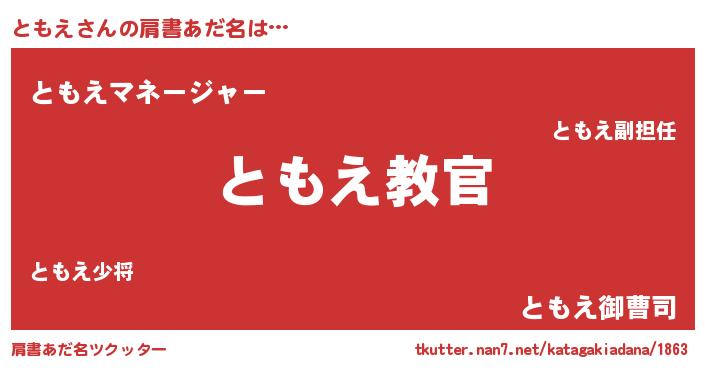 | 意味不明あだ名 | 『住所不定無職ともえ(2歳)』『自称ともえ』 |