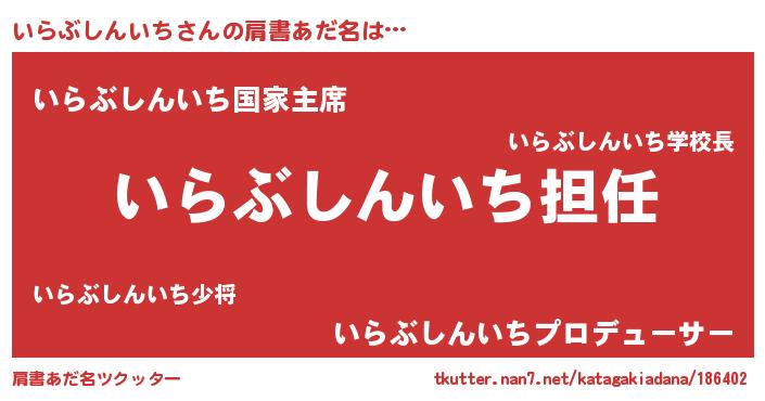 | 意味不明あだ名 | 『永久保存いらぶしんいち』 |