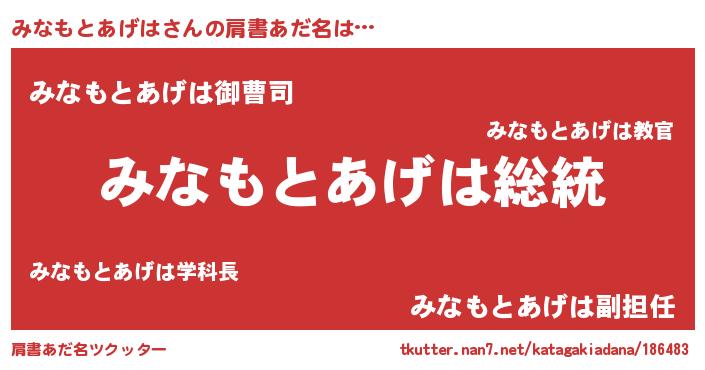 | 意味不明あだ名 | 『自称みなもとあげは』 |