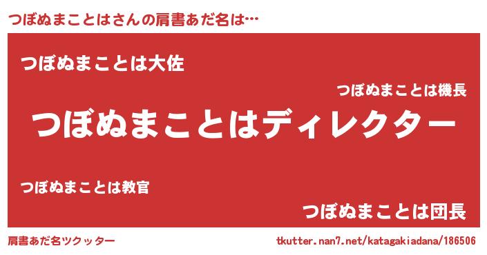 | 男性向けラノベタイトル風あだ名 | 『はたらくつぼぬまことはさま!』 |