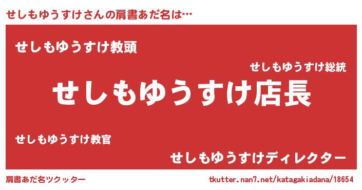 | ヘコむあだ名 | 『せしにゅー』『せしもゆうすけ(笑)』 |