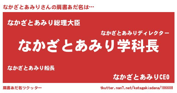 | 男性向けラノベタイトル風あだ名 | 『ノーゲーム・ノーナカザトアミリ』 |