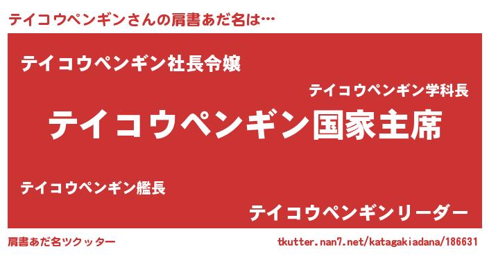 | ファンタジー風あだ名 | 『エターナルテイコウペンギンー』 |