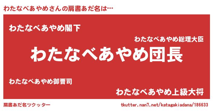 | 意味不明あだ名 | 『とにかく怪しいわたなべあやめ』 |