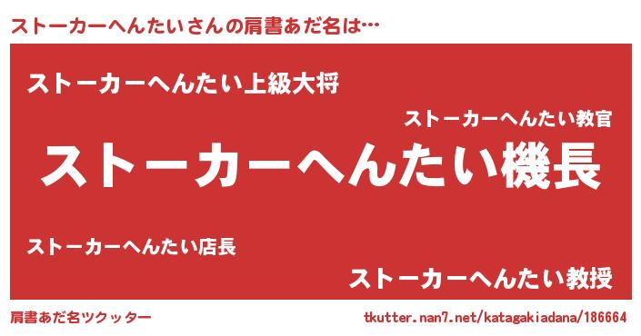 | 胡散臭い通販商品みたいなあだ名 | 『お金では代えられない隕石のかけら…その名も「ストーカーへんたい」』 |