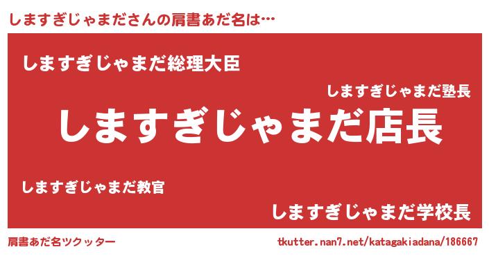 | 男性向けラノベタイトル風あだ名 | 『シマスギジャマダアートオンライン』 |