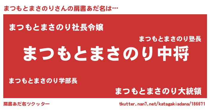 | 男性向けラノベタイトル風あだ名 | 『転生したらまつもとまさのりだった件』 |