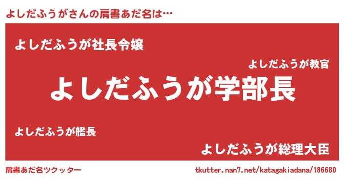 | 女子向けラノベタイトル風あだ名 | 『死神よしだふうがの再婚』 |