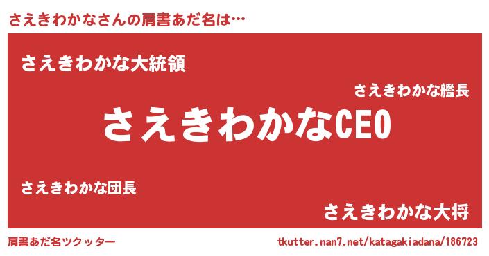 | ヒーロー風カッコイイあだ名 | 『スーパーサエキワカナ』『暗黒騎士サエ』 |