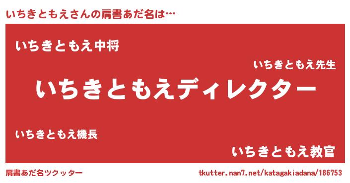 | 男性向けラノベタイトル風あだ名 | 『いちきともえに滅ぼされるだけの簡単なお仕事です』 |