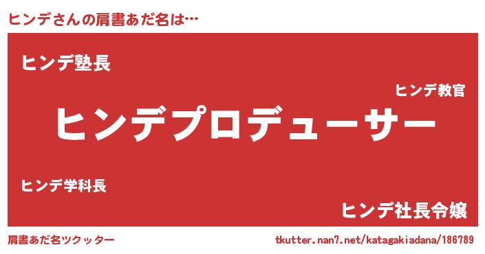 | ポケモン風あだ名 | 『ヒンゴンZ』『ヒヒンデ』『ヒーンイ』 |