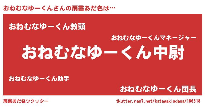| 伝説のあだ名 | 『古文書に記された暗殺者おねむなゆーくん』 |