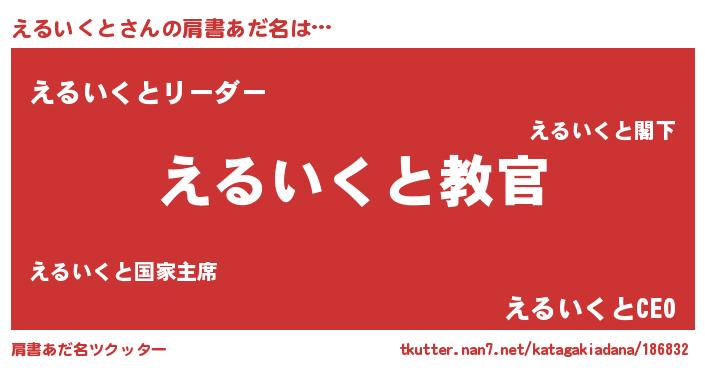| 男性向けラノベタイトル風あだ名 | 『この素晴らしい世界にえるいくとを!』 |