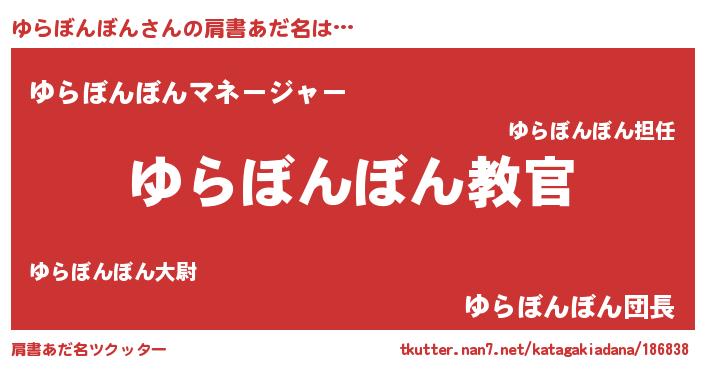 | 男性向けラノベタイトル風あだ名 | 『魔弾の王とゆらぼんぼん』 |