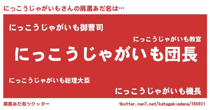 | 意味不明あだ名 | 『とにかく怪しいにっこうじゃがいも』 |