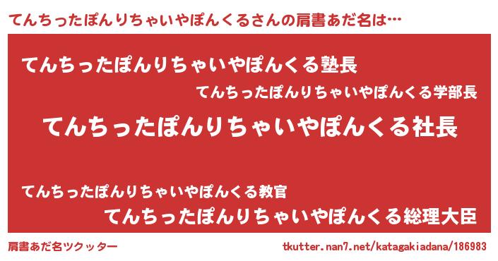 | 番長 | てんちったぽんりちゃいやぽんくる、またの名を・・・!『実はそうでもないてんちったぽんりちゃいやぽんくるにゃん』 |