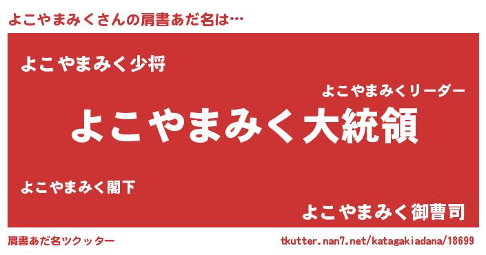| 欧米人風あだ名 | 『よこやまみくクリステル』 |