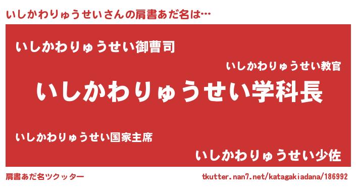 | 男性向けラノベタイトル風あだ名 | 『おまえをオタクにしてやるから、俺をいしかわりゅうせいにしてくれ! 』 |