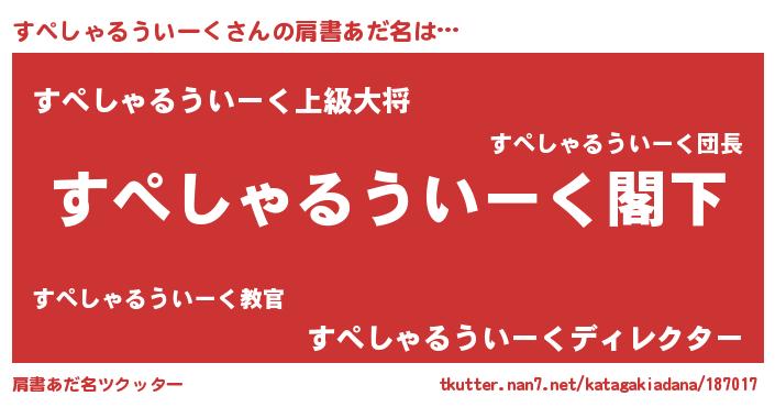 | ピコ太郎風あだ名 | 『スペ次郎』『スコ十郎』『スス太郎』 |
