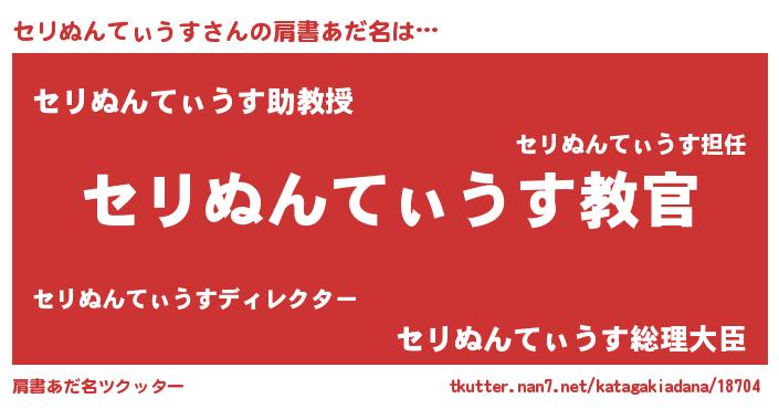 | 意味不明あだ名 | 『住所不定無職セリぬんてぃうす(68歳)』 |