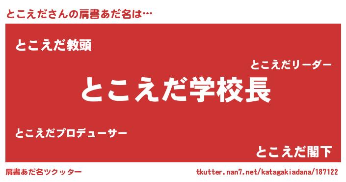 | ヒーロー風カッコイイあだ名 | 『慈愛の使者とこえだ』『ネオトコエダ』 |