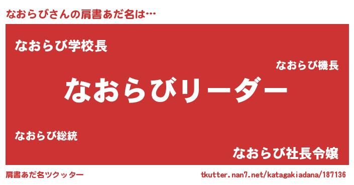 | 女子向けラノベタイトル風あだ名 | 『なおらびは平凡を望む』 |