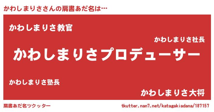 | 恥ずかしいあだ名 | 『プリティーかわしまりさ』『かわちん』 |