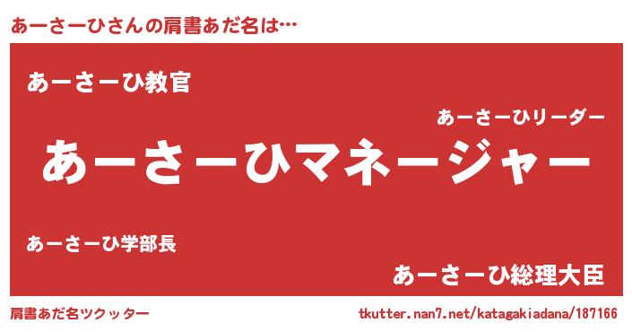 | 欧米人風あだ名 | 『アンジェラ・あーさーひ』 |